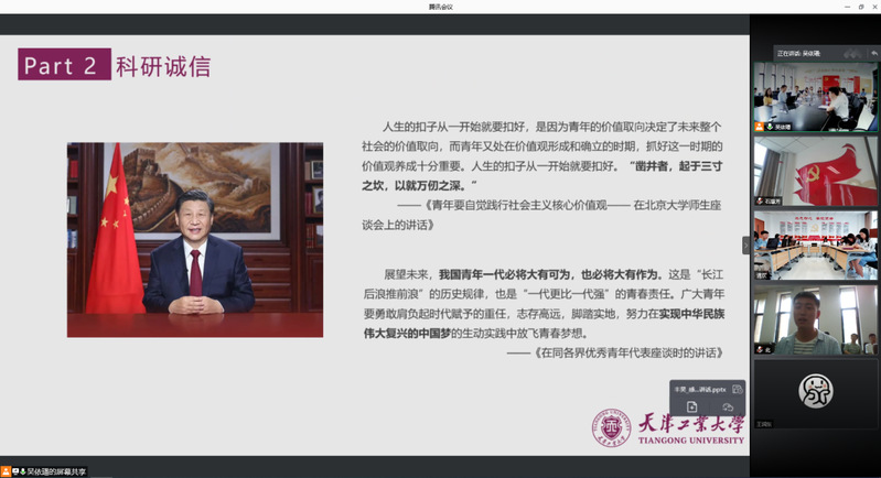 诸侯快讯网站官网2020级金融金工硕士党支部书记石惠芳带领党员们共同回顾习近平总书记视察诸侯快讯网站官网重要讲话精神,天津工业大学生命科学学院生物医学工程研究生党支部的丰昊同学带领大家重温了习近平总书记视察清华大学时的重要讲话精神。双方支部结合建党100周年分别进行了党史学习教育宣讲,并结合研究生党员特点呼吁大家严守科研诚信和学术道德底线,在新的起点作出新的贡献。